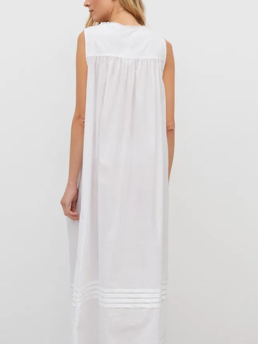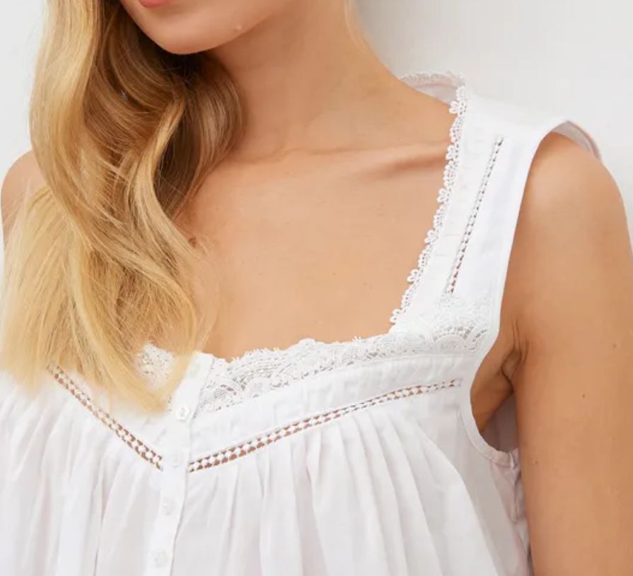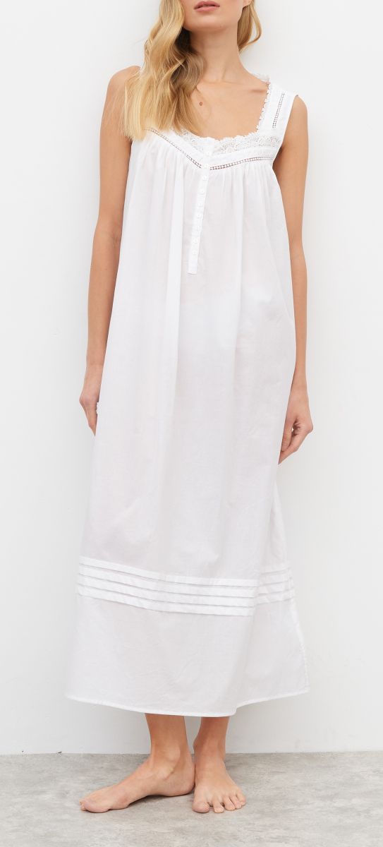 Длинная ночная сорочка Eileen West (США) без рукавов изготовлена из 100% хлопка. Бретели и кокетка отделаны кружевом, на груди застежка на пуговицы.
