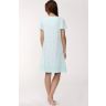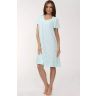 Очаровательная ночная сорочка из тонкого трикотажного полотна цвета мяты с мелким рисунком. Рукавом "крылышко". Низ купон. Кокетка на груди с фигурным вырезом отделана красивым кружевом, впереди планка на пуговицах.