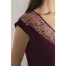 Элегантный женский топ украшен декоративным прозрачным и нарядным кружевом по линии плеча, изящный V- образный вырез так же дополнен кружевными вставками. Изделие легкое и свободное по фасону, выполнено из ткани высочайшего качества, что позволяет чувствовать себя уютно, комфортно и привлекательно в домашней обстановке. Женственная и удобная модель подходит как для комфортного отдыха дома, так и для сна.