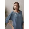 Топ темно-изумрудного цвета с изящным вырезом станет не только удобным, но красивым дополнением домашнего образа. Топ классической посадки длиной до середины бедра, изящные рукава летучая мышь длиной 3/4.