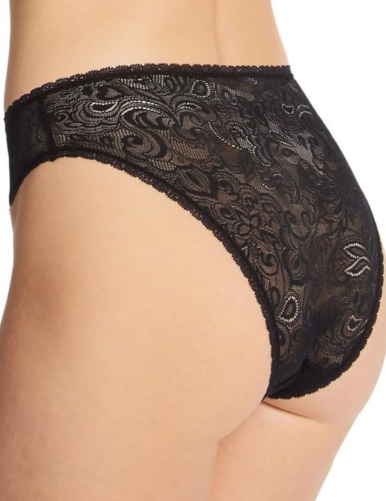Обольстительные полупрозрачные трусы с высоким вырезом бедра из эластичного кружевного полотна. Линия талии и линии выреза бедер обработаны узкой и плоской резинкой с фестончатым краем. Ластовица:100% хлопок.