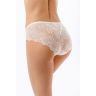 Трусы-панти со средней линии талии. Передняя и задняя детали выполнены из шелковистого эластичного принтованного полотна и эластичного кружева. Срезы пройм задней детали отделаны кружевом с ажурным краем.