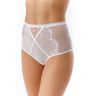 Трусы-макси с высокой линией талии выполнены из эластичного кружева и эластичной сетки. Украшение металлические пуговицы, к которым при желании можно пристегнуть чокер.