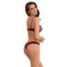 Прелестные трусики-стринги выполнены из эластичного полотна бордового цвета. Удобная посадка и мягкое облегание позволит чувствовать себя уверенно и соблазнительно. Трусики декорированы восхитительной цветочной вышивкой. Ластовица хлопковая.