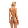 Двусторонний бюстгальтер-треугольник 7094 Lolita Bronzo со стильными плетеными завязками и двумя видами принтов: цветочный в песочных тонах с голубыми оттенками и анималистический «питон». Их сочетание позволяет создавать разные образы. Выполнен из люксовой ткани с тактильным эффектом гладкого и легкого шелка, которая быстро сохнет и сохраняет цвет. Сочетайте с плавками 7095 Alegria Bronzo.
