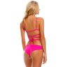 Бюстгальтер-треугольник со съемными чашками и отстегивающимися регулируемыми бретелями, стилизованными под ремешки. Выполнен из люксовой ткани, с тактильным эффектом гладкого и легкого шелка, которая быстро сохнет и сохраняет цвет.