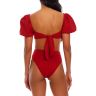 Бюстгальтер - топ 9352 Calista Red с мягкой чашкой, с декольте "карэ" и модными рукавами буф. В нижней части имеется дополнительная поддержка для комфортной посадки по фигуре. Широкие завязки на спине в виде изящного банта позволяют регулировать объем изделия. Прекрасно комбинируются с другими изделиями. Выполнен из люксовой ткани с тактильным эффектом гладкого и легкого бархата, которая быстро сохнет и сохраняет цвет. Изделие может использоваться и как элемент верхней курортной одежды. Сочетайте с плавками 9353 Isabella Red.