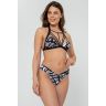 Бюстгальтер-халтер с мягкими чашками из коллекции Graphical Mood, оформлен графическим принтом и эластичными шнурками, которые эффектно смотрятся и привлекают внимание к декольте. На спинке застежка. Сочетайте с любыми плавками этой же коллекции для создания яркого пляжного образа.