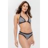 Бюстгальтер-треугольник из коллекции Spicy Stripes в черно-белую полоску, дополнен съемными вкладышами. Сочетайте с любыми плавками этой же коллекции для создания яркого пляжного образа.